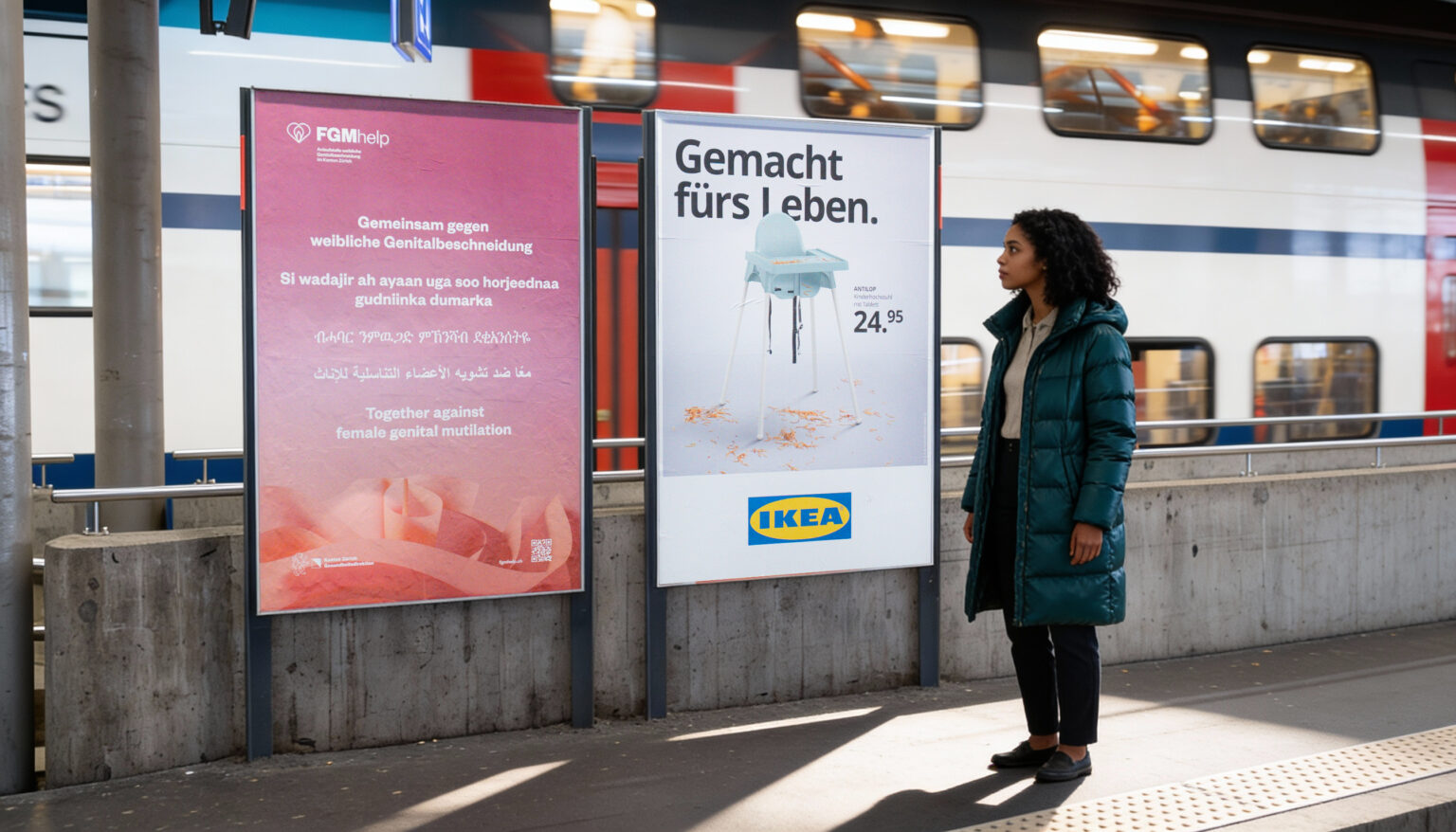 Mit einer Plakataktion an zentralen Knotenpunkten des öffentlichen Verkehrs in Zürich, Winterthur und Uster haben wir das Thema in der Wahrnehmung der Bevölkerung platziert.